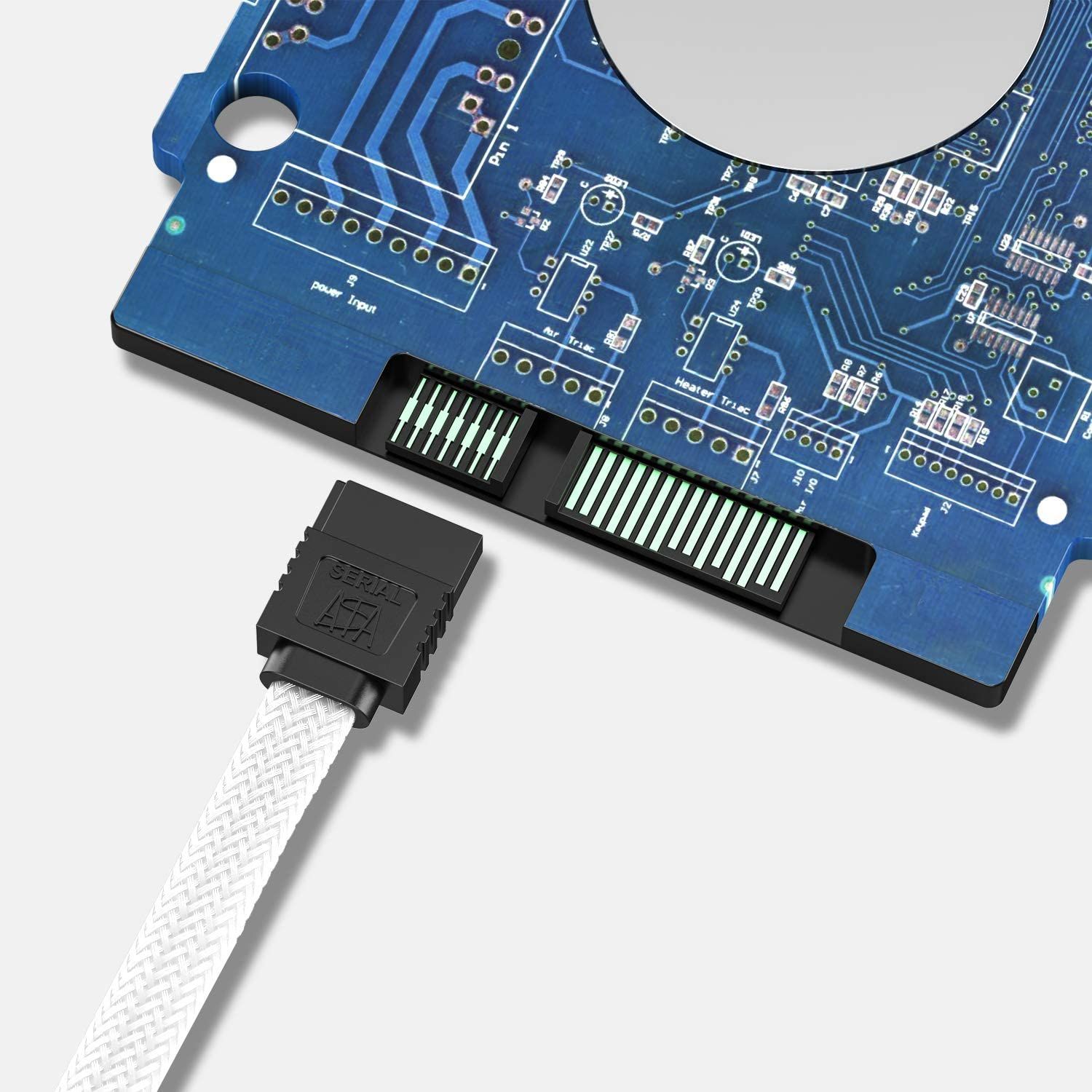 耐用性、速度和广泛的兼容性是 QIVYNSRY SATA 电缆的一些突出特点。编织电缆下方是铝箔屏蔽层,可减少电磁辐射的干扰。它们允许数据线达到 6Gbps 的速度,因此您可以传输大型游戏文件而不会出现掉线的情况。