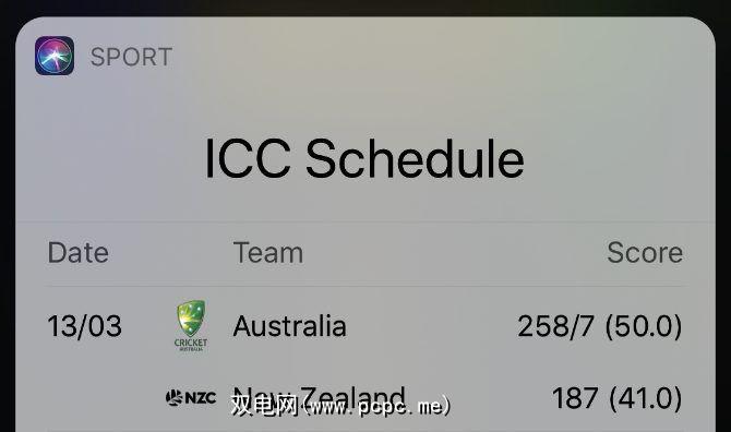 Siri找到了最近的一场比赛,并为每支参赛球队带来了得分。