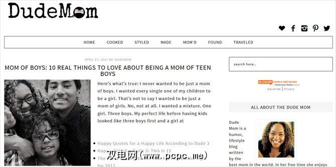 如果您是一个或三个男孩的妈妈,您将非常欣赏杜德妈妈。这个幽默和生活方式的博客不仅会让您发笑,还可以做更多的事情。您可以查看有关烹饪,时尚等方面的生活方式提示。然后,从导航中弹出妈妈部分,然后欣赏有关做妈妈的文章。这些帖子以随意的风格写成,会让您喜欢Dude Mom的幽默感。
