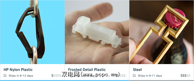 有可以打印60多种材料,从不同种类的塑料(最便宜)到贵金属(最昂贵)。支持全色打印,但价格会成倍增长。根据材料的不同,运输可能需要3到12个工作日。