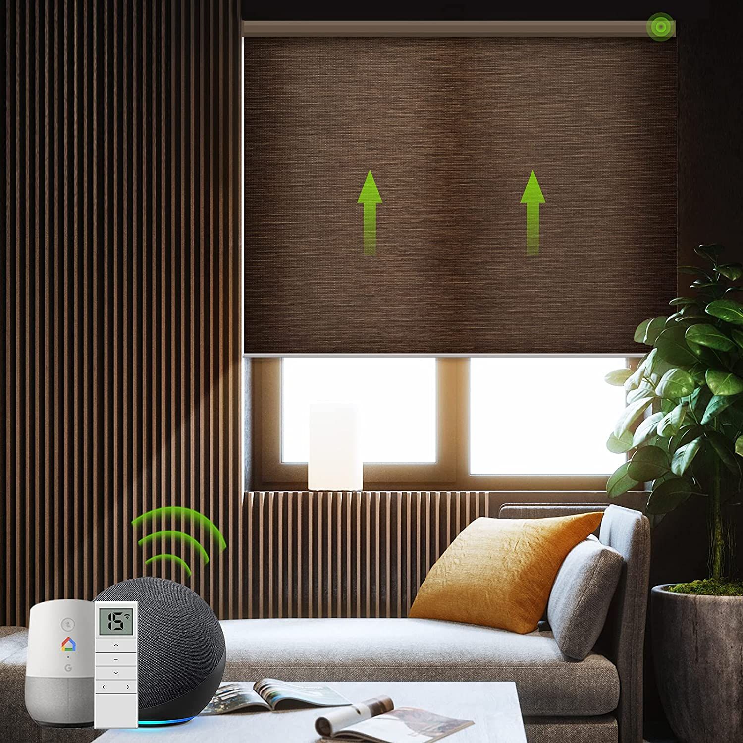 Yoolax 电动智能百叶窗采用提花纹理面料,具有 50% 的遮光能力。涤纶织物非常耐用,可抵抗高强度阳光,并且完全不透明。它的耐用性确保了较长的使用寿命,因此,如果您正在寻找一款坚固耐用且易于通过免提技术使用的智能百叶窗,这是一个不错的选择。
