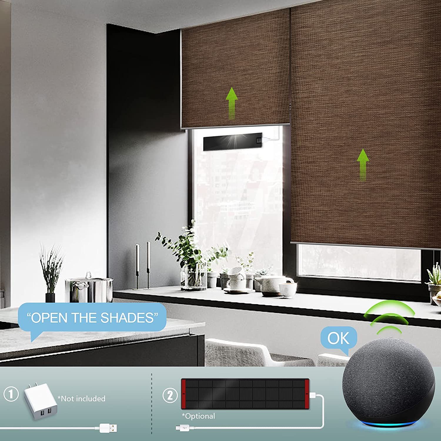 Amazon Alexa 控件让您可以自由地使用语音命令从家中的任何地方操作百叶窗。购买这款百叶窗的另一个原因是其可选的太阳能电池板功能。您可以通过利用太阳能来抵消智能盲操作的能源成本。太阳能电池板提供必要的电力来为电机的电池充电。