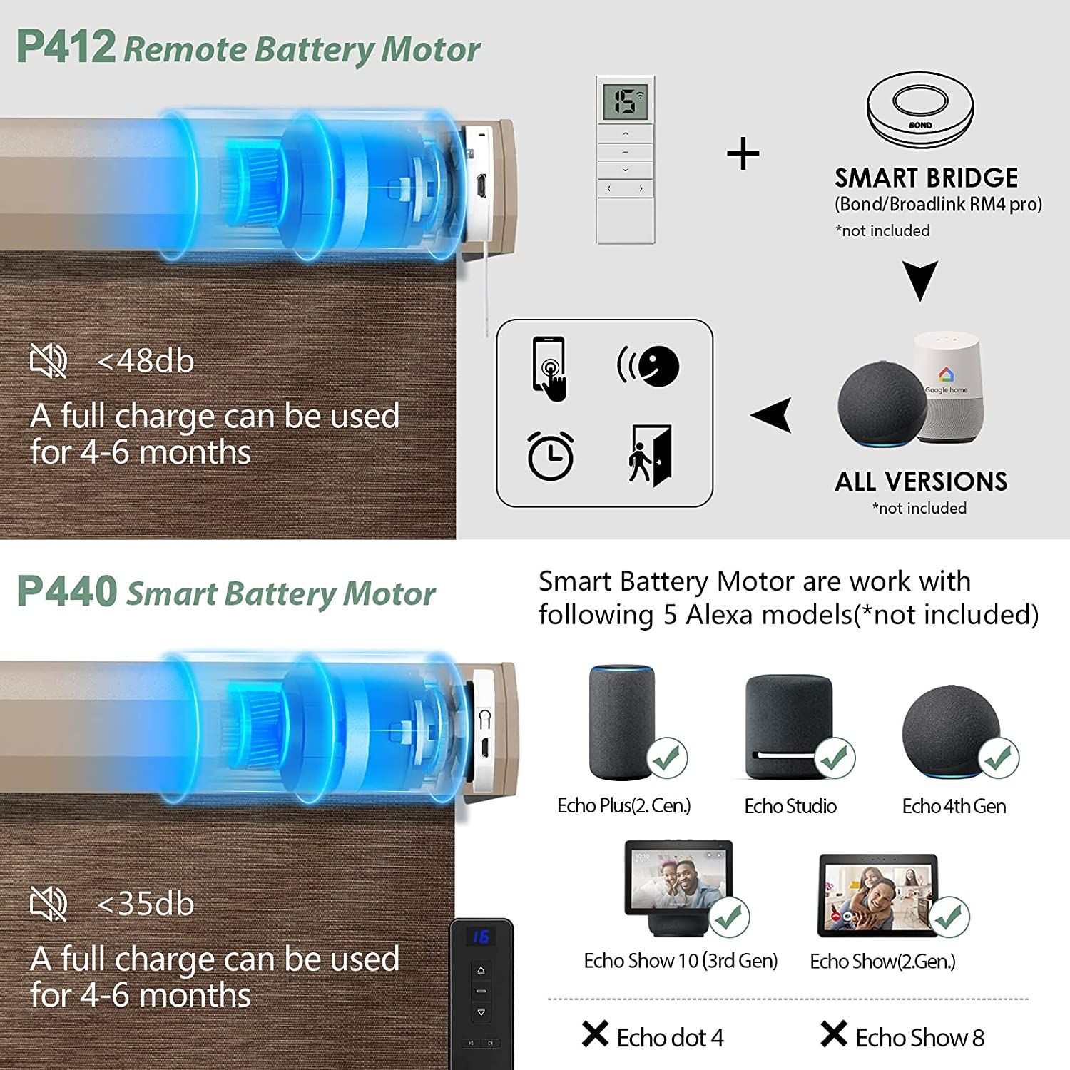 全功能遥控器可让您控制智能百叶窗操作。但是,如果您想要更灵活的控制,您可以将智能百叶窗与 Amazon Echo 或 Google Home 等智能家居生态系统设备连接起来。您需要一个智能桥来将智能百叶窗连接到各种 Amazon Echo 和 Google Home 设备。