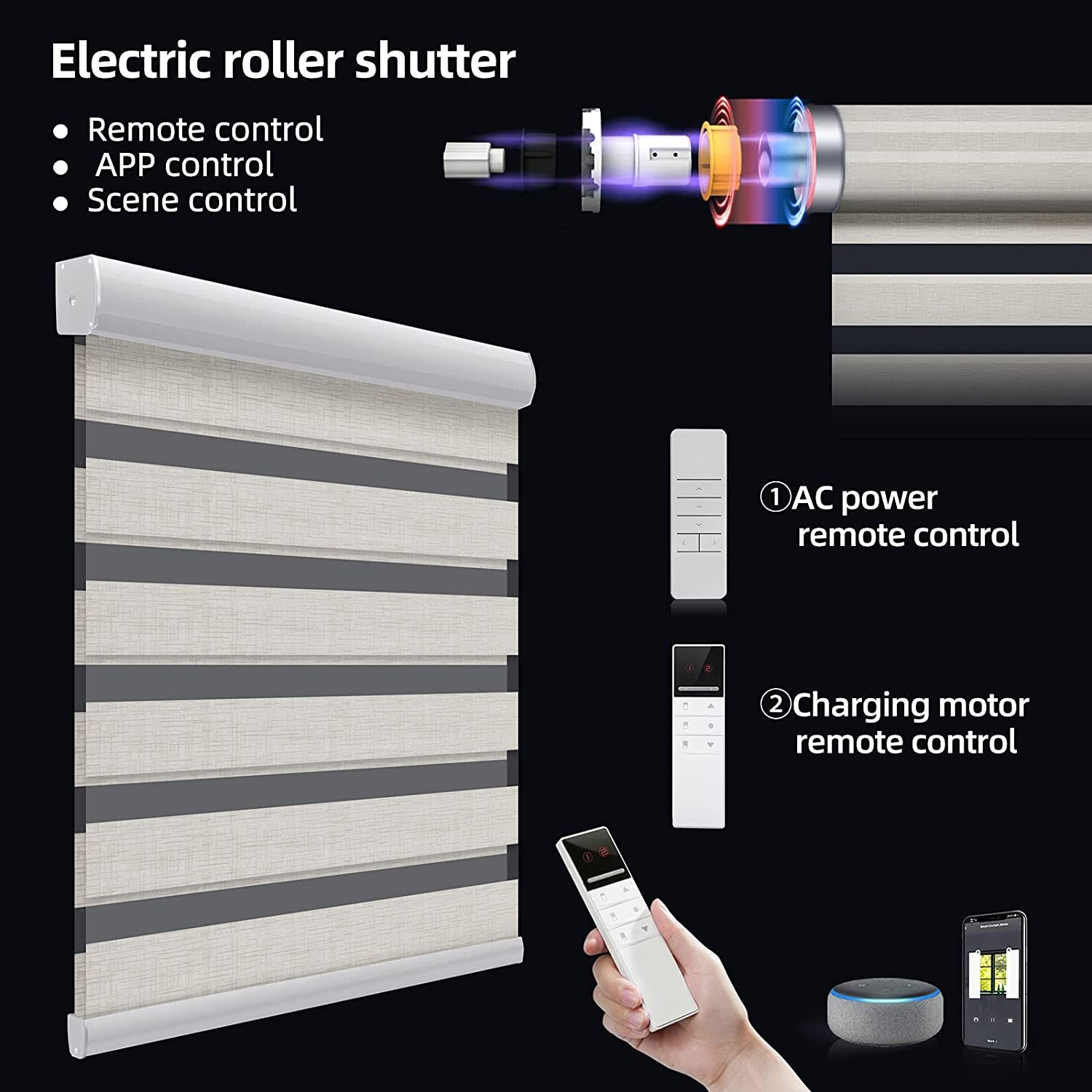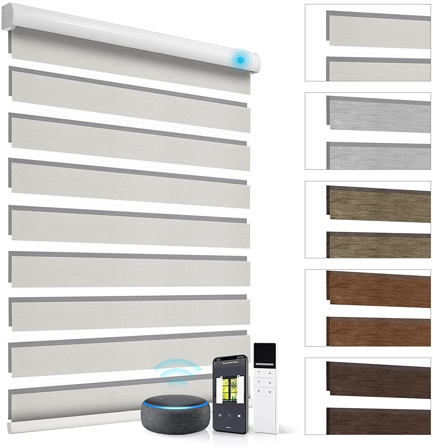 ZSTARR 电动斑马百叶窗提供不同的电机选择、充电和插入式电机。它具有移动应用程序控制、功能齐全的远程控制和紫外线防护功能。这些智能百叶窗采用标准质量的亚麻布面料。盲人面料触感柔软、亲肤且无绳。如果您家中有孩子和宠物,这款百叶窗是理想的选择。