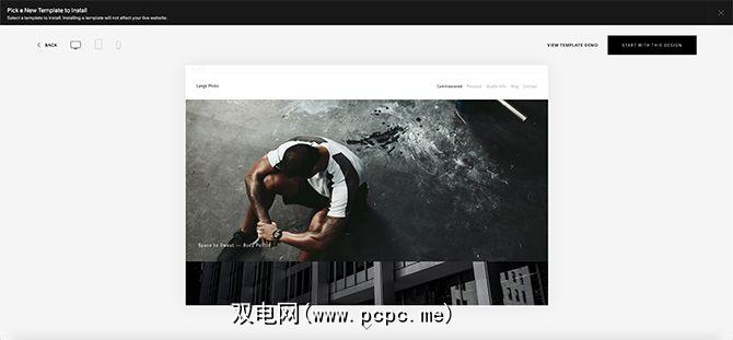现在,我们正在使用预览模式来查看模板,因此您看到的截图是演示模板的Squarespace已放在一起。但是,Squarespace还可以让您预览这些演示在不同类型的设备上的外观。