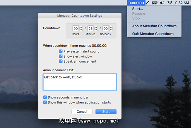 当我想要简单的倒数时,我更喜欢菜单栏倒数–与您交谈的计时器。是的,使用语音提示是一种a头,但这很有趣–您的计算机可以大声提醒您当天晚些时候打算做什么。