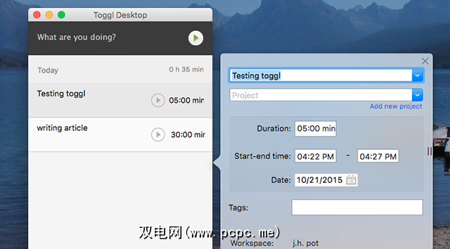 Mac应用程序不影响您的工作:仅告诉您您在做什么以及与之相关的项目,它将完成工作。您可以在Toggl网站上查看完整的报告。您需要一个帐户才能上手,但是并不需要很长时间。