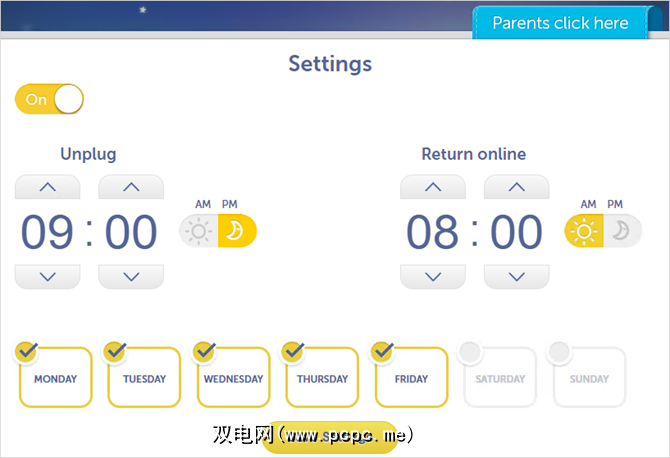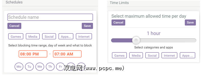 然后您可以设置工作日和周末的时间限制。您还可以选择在特定的日期和时间阻止访问。这些设置为您提供了极大的灵活性,并且可以帮助您限制屏幕大小。