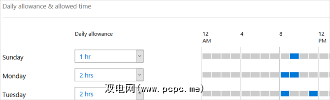 然后,在孩子帐户下选择屏幕时间选项以设置每日津贴额和时限。请记住,允许时间不能超过每日津贴。