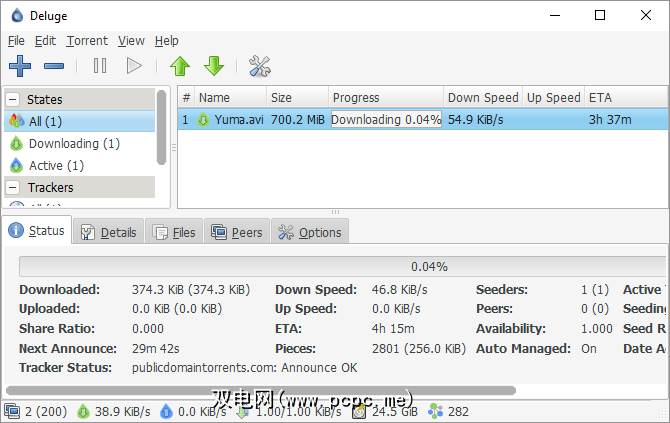 与其他任何客户端相比,该安装花费的时间更长,点击次数也更多。幸运的是,Deluge不受任何膨胀软件,工具栏或广告的影响。界面与qBittorrent相似,但拥挤程度稍高。