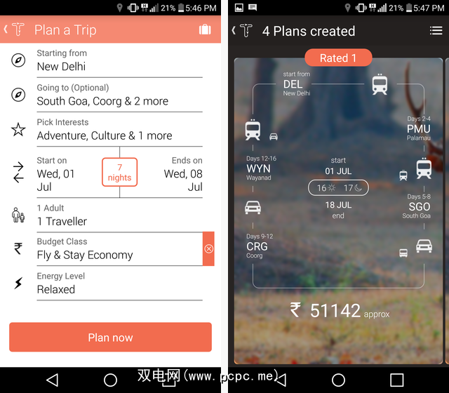 只需输入所有信息-您想去哪里,感兴趣的东西,什么您的预算是-由Tripigator负责其余的工作。它会为您安排使用多种运输方式的旅程,为您推荐您可能会感兴趣的地方停下来,并为您分解全部费用。它甚至可以创建多个计划,您可以选择自己认为最好的计划。