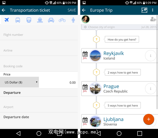 就像Goosit一样,您将需要手动输入,但是与Goosit不同,该应用程序不会在您输入的项目之间建立任何联系。因此,如果您在两个不同的城市中输入,但它们之间没有运输方式,myTrip则不会在意。您可以将两个城市的时间设置为重叠,而myTrip不会纠正您的问题。