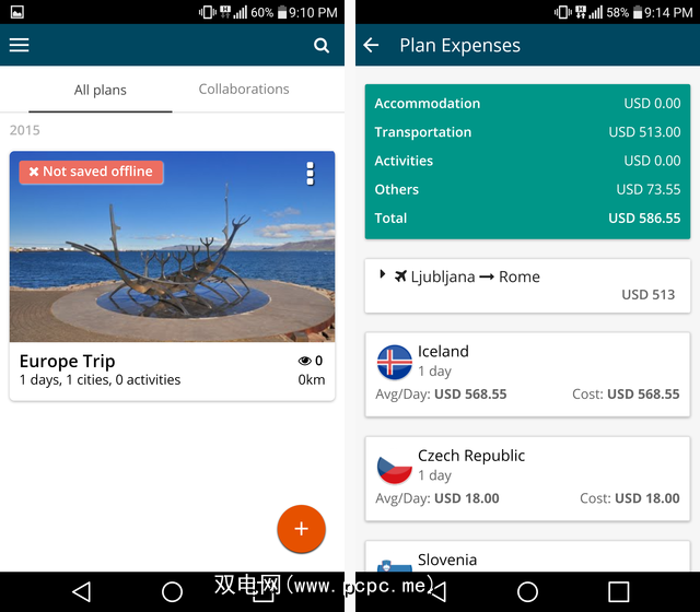 该应用程序的“费用"部分可让您记录沿途的费用(如食物,机票和出租车费用),从而为您的整个活动提供动态而全面的预算旅行。说到预算,别忘了我们已经向您展示了如何为您的下一次旅行节省金钱。