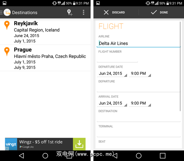 从设计角度看,它似乎是设计不久的,并且从未更新,但是如果您不介意的话,那么我认为您会发现它简单易用。它会收集您所有的预订信息,您可以根据需要进行编辑。此外,所有功能都可以离线运行,尽管显然它需要互联网来更新航班信息,例如您的登机口。