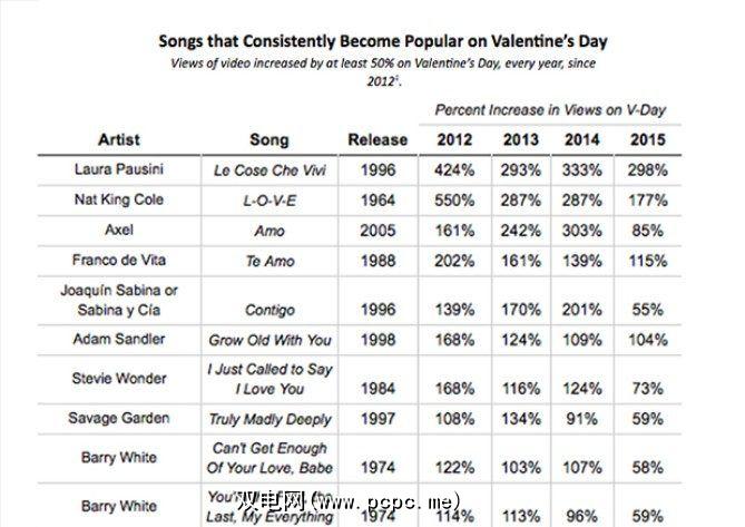 5。 YouTube的浪漫播放列表(网络):18首最受欢迎的情人节歌曲
