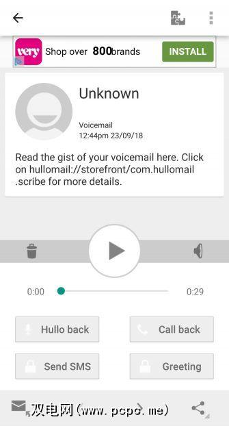 您可以点按每个条目以播放留言并使用手机的拨号器应用程序进行回叫。这是基本的,但是如果您不需要任何花哨的内容,那么HulloMail就是您的理想之选。