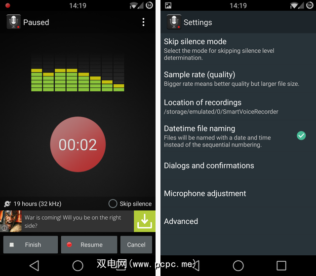 智能录音机并不是很复杂,但是可以完成工作。如果Cogi看起来有点混乱或不适合您的需求,可以尝试使用Smart Voice Recorder。