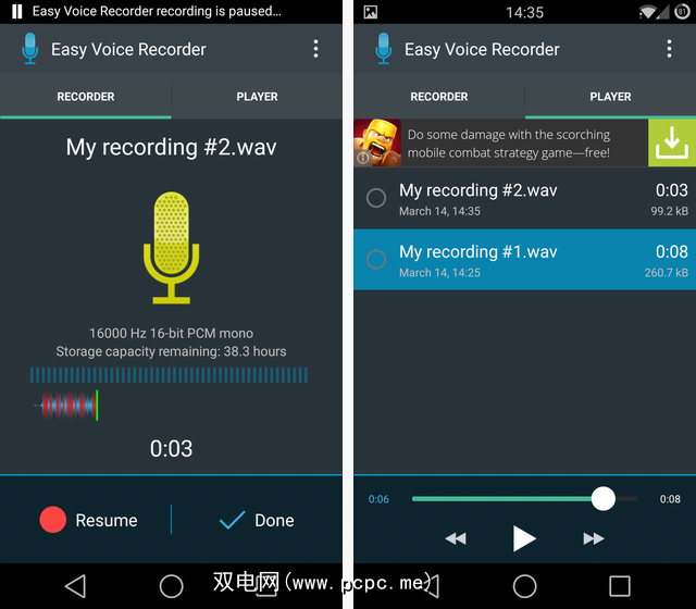 对于其他产品,Easy Voice Recorder比Smart Voice Recorder更加精致,但是它的大多数改进来自付出代价应用内升级收费4美元,因此只有那些想要最多选择的人才需要申请。如果您只需要基本知识,Smart Recorder仍然不错,但是Skyro没有广告,而且还是免费的,因此没有太多理由坚持使用Smart Voice Recorder。