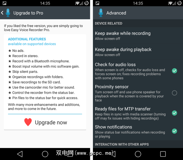 访问该应用允许您执行的所有操作都需要$ 4专业版。借助它,您可以删除广告,以立体声录制,跳过静音并从状态栏控制记录器,以及其他优点。这肯定是一个相当大的升级,但是对于录音应用程序而言,4美元的价格有点贵。
