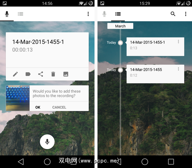 像Cogi一样,在录制时可以抓取图片以供日后召回时使用,也可以报废如果您改变主意的话。该应用程序还支持标签,可让您对生活中不同领域的事物进行分类。您肯定会在屏幕快照中注意到保存的录音的引人入胜的时间表视图,这很酷。