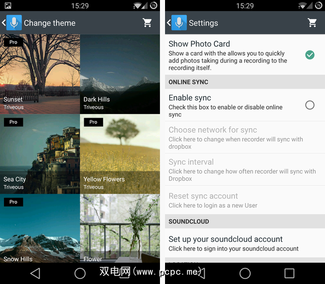 Skyro在技术方面也提供了此功能。可以将默认文件名更改为不同的日期/时间格式,可以在WAV,MP3和M4A文件类型之间进行选择,添加音频增益,尝试蓝牙录音,以及将位置添加到录音中,以便您可以记住以后的位置。 $ 2升级(应用内购买或单独下载)增加了更多主题,文件压缩,完整的Dropbox同步选项和蓝牙录音。