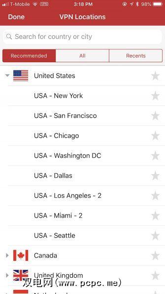与提到的其他VPN服务一样,Speedify具有严格的AES-256位加密,因此没有人可以窥探您的互联网活动。从两个自动服务器设置中选择(最快或 Torrent Friendly ),或从可用的全局选择中手动选择服务器位置。