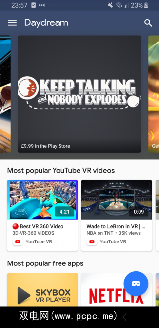 Daydream应用可充当其他支持Daydream的VR内容的门户。您可以找到VR视频,其他支持Daydream的应用程序以及用于设置Daydream耳机的配置。