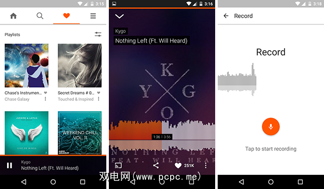 SoundCloud之所以对独立艺术家如此出色,是因为它使共享您的音乐变得异常容易与他人一起拥有音乐。内置的“记录"功能可以记录设备的音频播放,并且歌曲可以通过一键式共享到Facebook,Twitter和Tumblr。