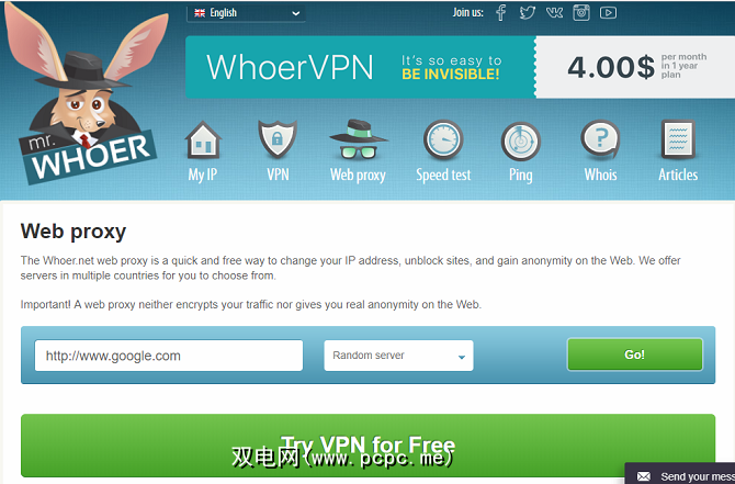 Whoer还提供免费的速度测试和ping测试,以及付费的VPN服务。