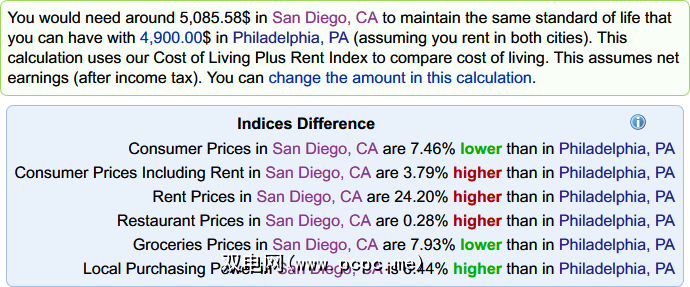 如果您打算搬到另一个城市,则绝对应该使用NUMBEO的生活费用比较。只需在两个城市中键入,它就会告诉您杂货价格,租金价格,餐厅价格等的差异。搬到一个生活水平较高且工资相同的地区基本上会使自己变得更贫穷,因此请避免这种错误。这个网站!