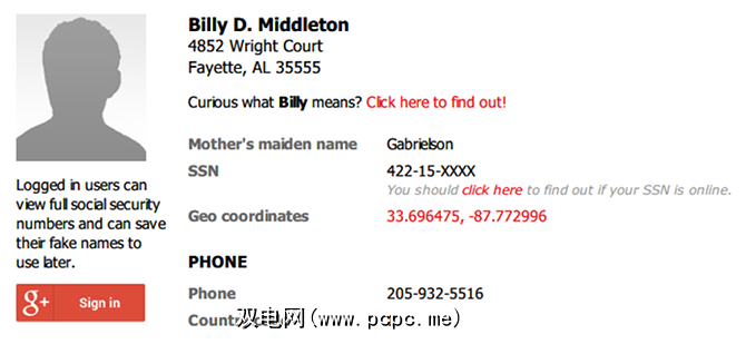 如果您想注册一个在线帐户或签署一个在线请愿书而不会泄露您的个人详细信息,请使用Fake名称生成器可创建虚假名称,地址,电话号码,生日,财务详细信息等。这是停止在线共享私人详细信息的一种方法。 (但是,不要为具有法律约束力的帐户提供虚假的详细信息,否则可能构成欺诈!)
