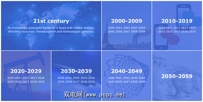 到2030年,情况会怎样? 2040年? 2050年? 2100呢?甚至公元10,000年及以后?未来时间表会根据事实和正在进行的科学研究提供对未来的预测。炒作的每一点(例如“曼谷因2031年的洪水而被抛弃")至少有一个来源得到了支持。