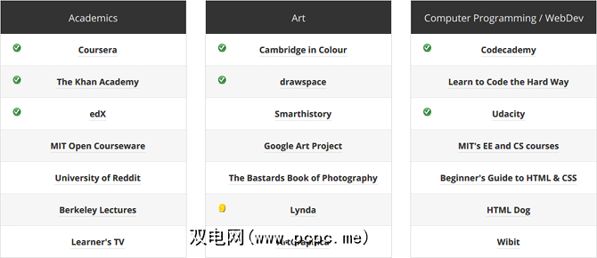 NoExcuseList是免费的在线资源的汇编,用于学习新技能。如果您曾经想学点东西,但又不知道从哪里开始,那么您现在没有任何借口。列表按类别进行分类,包括学术,烹饪,DIY和其他。