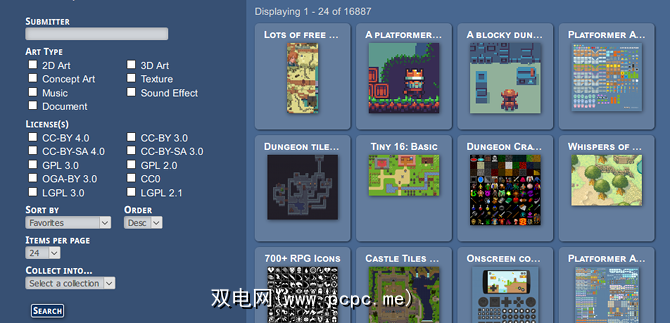 OpenGameArt是与免费游戏相关的资产的大量集合,包括2D和3D艺术。限制因资产而异,但都是免费的,其中许多是根据CC0授权的。这是为自己的像素艺术寻找灵感的好方法。