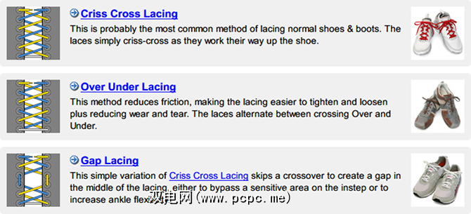 请告诉我-它听起来并不傻。如果脚的某些部位疼痛,或者反复出现水泡或老茧,那么改变鞋带的方式可能会受益。伊恩(Ian)的鞋带网站拥有您需要了解的所有有关鞋带的知识,并且您不会后悔。