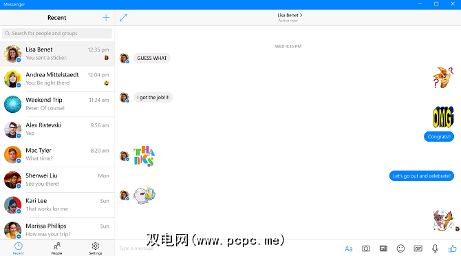 如果您是一直使用该服务与朋友聊天的人,那么使用专用的任务栏图标会非常方便。与功能强大的通用Skype应用不同,Messenger应用保留了网站上惯用的功能。