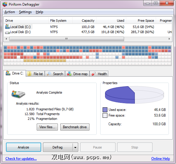 CCleaner的制造商提供了Defraggler,它是一款便携式碎片整理工具,具有固态功能,并具有令人愉悦且直观的界面。您可以对驱动器进行基准测试,查看文件列表和驱动器映射以及检查驱动器的运行状况。