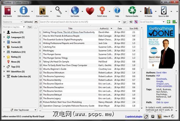 免费且开源的电子书管理器。带有一个用于管理您的电子书的库,可以将电子书从一种格式转换为另一种格式,同步到您的阅读器设备,从网络下载新闻并将其转换为电子书格式,可以用作电子书查看器,还可以编辑电子书。