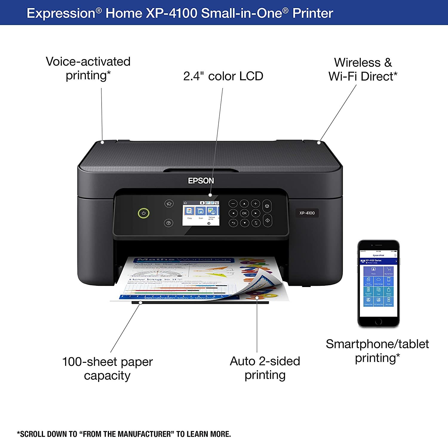 Epson Expression Home XP-4100 是一款紧凑型一体式打印机,可满足家庭、办公室或商业需求。其占地面积小,占用空间更小,其时尚的外观设计可轻松融入任何家居或办公室装饰。该打印机提供快速打印、完美打印质量和每页打印节省。