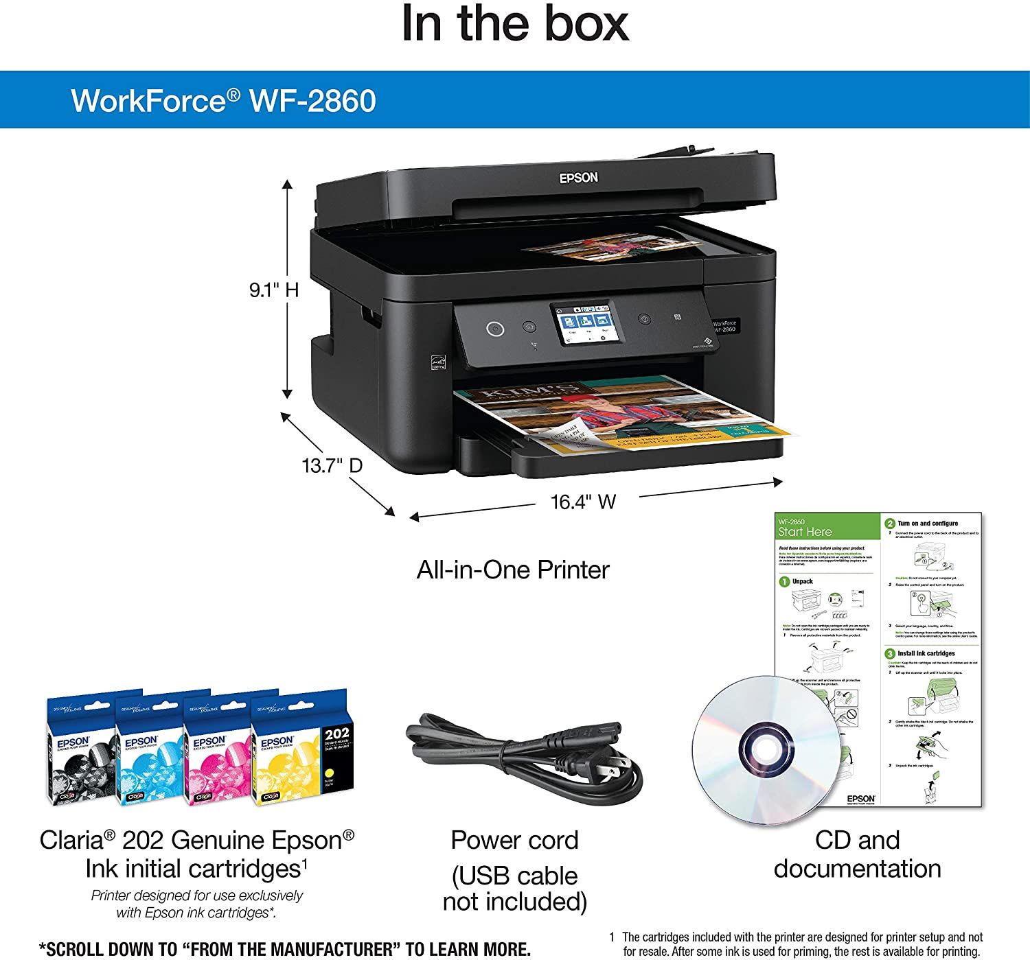 Epson Workforce WF-2860 是一款功能强大的无线打印机,还提供传真、扫描和复印功能。除了无线连接,它还支持以太网连接,用于商业或办公级网络。该打印机以较低的每页成本满足大批量打印的需求。它通过 NFC、Wi-Fi、以太网和亚马逊 Alexa 具有多种免提操作功能。
