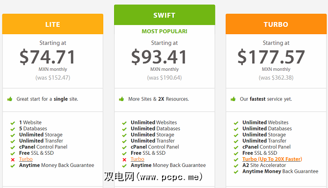 关于计划,A2提供共享托管,VPS托管和专用托管。入门级共享托管计划包括25个电子邮件地址,2.1 GHz核心,五个数据库以及一台具有保证的64GB RAM的服务器。不管您选择哪种计划,都可以使用Softaculous轻松安装WordPress。