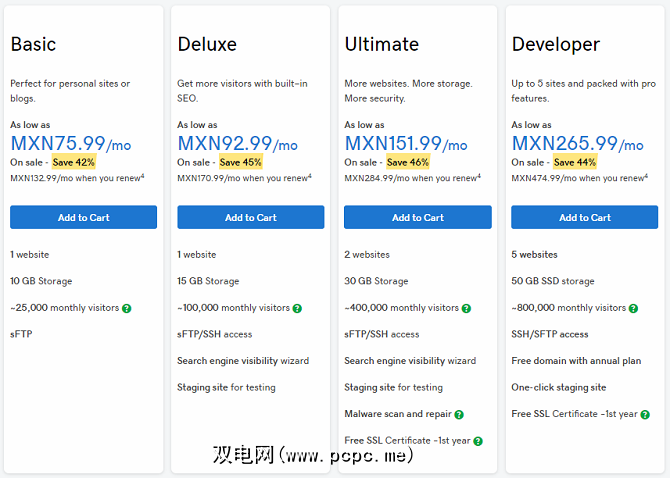 最便宜的GoDaddy WordPress托管计划的费用为 $ 8.99 /月。每月最多可容纳25,000位访客。它提供了10GB的存储空间和99.99%的正常运行时间。