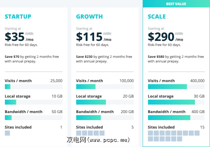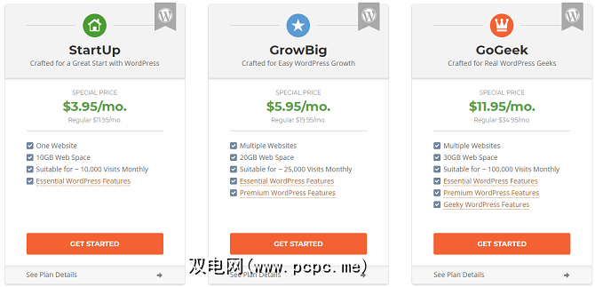 它是最便宜的托管WordPress托管计划(称为StartUp),每月费用 $ 11.95 可以每月进行10,000次访问,并提供10GB的空间。