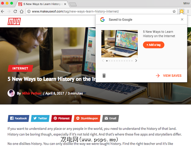 添加链接就像单击任何网页上的“保存到Google"扩展程序一样简单。但是Google允许您添加注释,从而增加了距离。每个书签都会自动抓住页面的前几行,但是您可以对其进行编辑以将其变成自己的注释。因此,几天后重新访问书签时,您不再需要记住为什么保存该链接。您的便笺将带有注释。