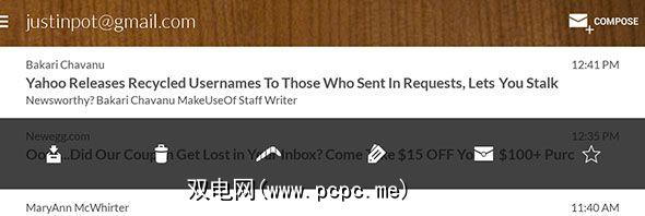 基于手势的收件箱管理:刷卡任何电子邮件一种存档方式;滑动另一种方式可以调出上述选项(从左到右:存档,垃圾箱,飞旋镖,标签,响应,加星号)。