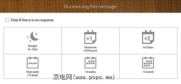 我们将从明显的区别开始:只有Boomerang才能提供喜欢Gmail的Android用户的功能。作为一般介绍,Mark的文章向您展示了Boomerang是一款功能强大的Gmail扩展程序,可让您将任何电子邮件存档到将来的给定日期。请查看该文章,以获取Boomerang核心功能的深入说明,这些功能也概述如下。