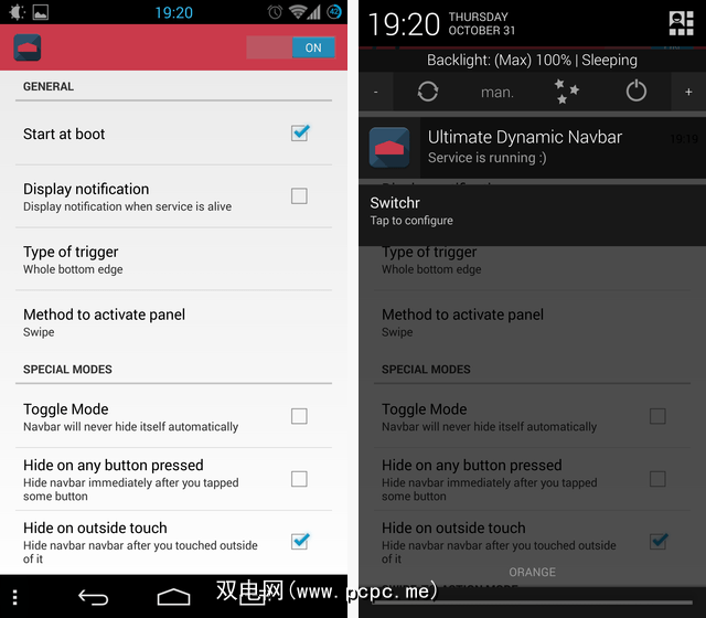 终极动态导航栏具有我在最近的记忆中见过的最完整的首选项菜单之一。认真地讲,这个野兽可以让您自定义任何内容。以下是几个屏幕,可让您大致了解您可以做什么:
