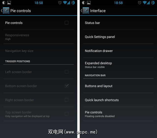 对于Cyanogenmod,这是我关闭导航栏的方法:我转到设置>界面> Pie控件,并从屏幕顶部删除了该复选框(即,禁用的饼图控件)。然后,我进入扩展桌面,并选择可见的状态栏:
