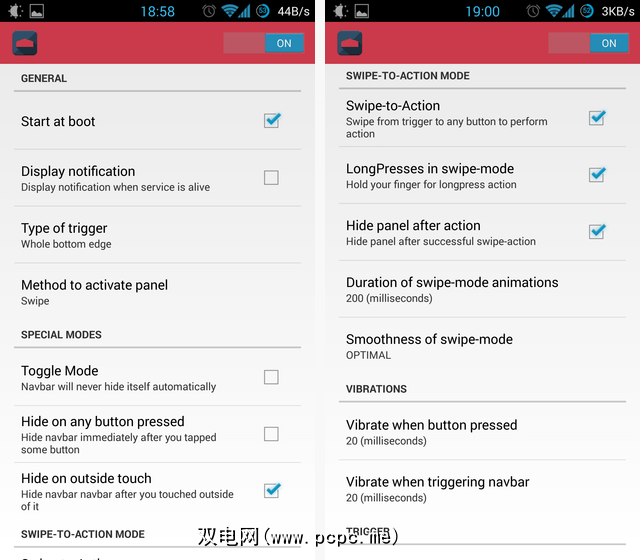 不同的设置对不同的人来说很重要,但对我来说,触发类型很重要最初,触发器设置在设备的左下角–点击或滑动以切换导航栏。如上所示,我将其更改为整个底部边缘,这意味着从屏幕底部向上滑动会弹出导航栏,这对我来说是非常自然的手势。