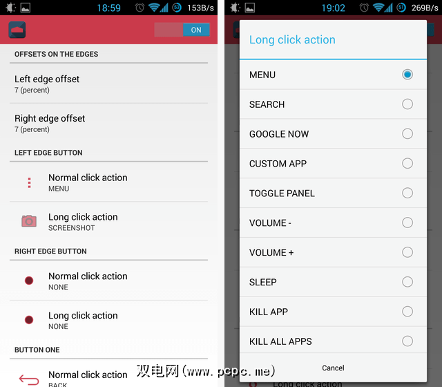 上面的两个其他值得注意的设置是滑动动作和 LongPresses(滑动模式)(在右侧的屏幕截图中)。首先,您可以向上滑动以显示导航栏,然后只需将手指按到一个按钮并将其提离屏幕即可。这算作按钮按下,它使使用自动隐藏的导航栏就像处理可见的导航栏一样容易:不需要额外的点击。